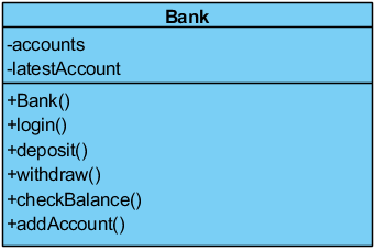 A UML class diagram would represent the Bank class as: