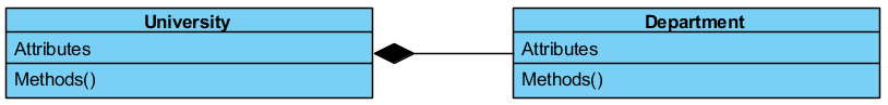 The end of the line with the filled-in diamond is the composite class, and the other end of the line is the component class. In this case, University is a composite class and Department is a component class.